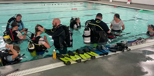 Swimming Pool Sessions - This section of the course is where we teach the students the skills they will require to become safe confident divers. It consists of five sessions lasting around an hour (based on a group size of 6, increasing the group size to 10 will require 1.5 hours).